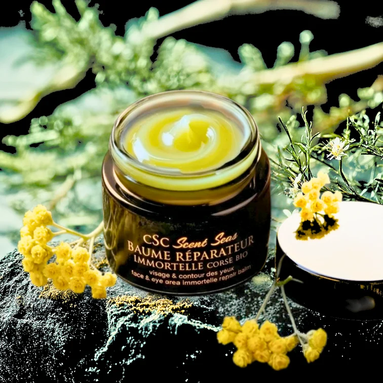 Nos baumes qu'ils soient formulés avec des matières premières corses, des Caraïbes, de Polynésie, de l'Océan Indien, sont les soins indispensables d'une réparation en profondeur du derme.